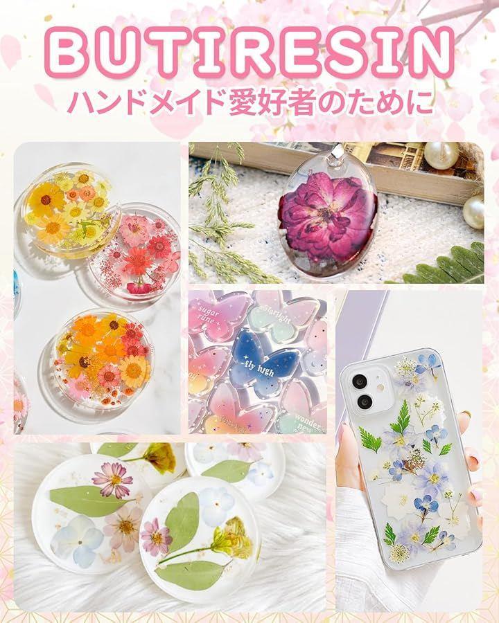 「抜群の透明感と速硬化」 BUTIRESINのUVレジン液は、クリスタルのような高い透明度を誇り、硬化後のベタつきを最小限に抑えています。