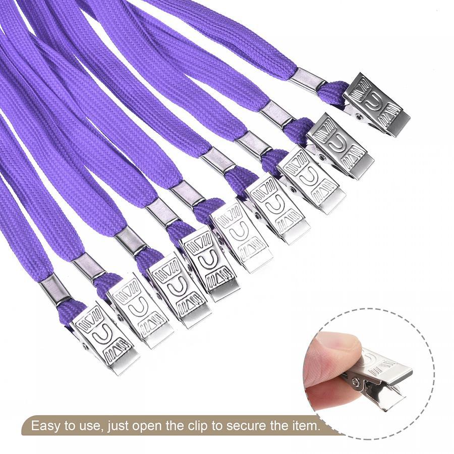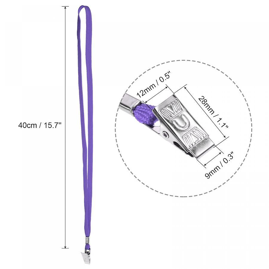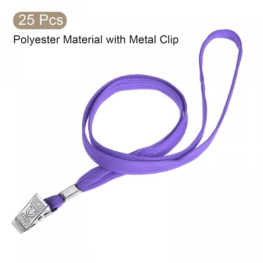 カラー:パープル素材:ポリエステルネックストラップの長さ:40 cmクリップの長さ:28 mmクリップの全幅:12 mm;クリップの開口部の幅:9 mmパッケージの内容:25 xフラットネックストラップ(カードは含まれていません)