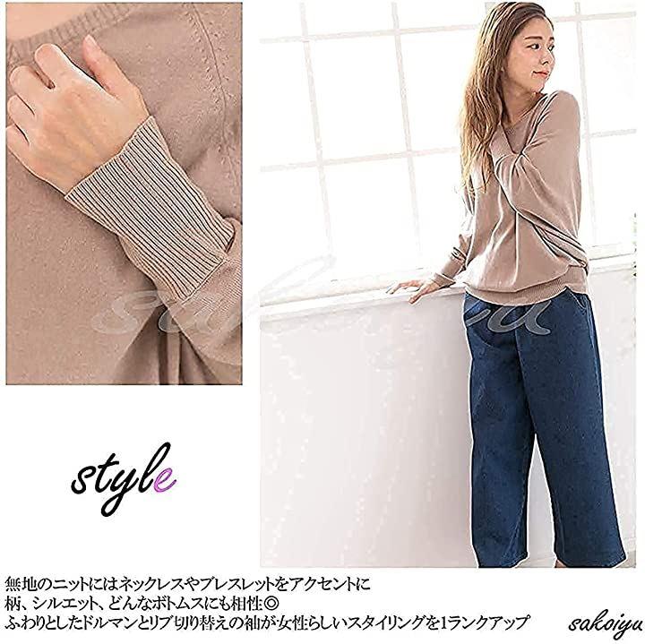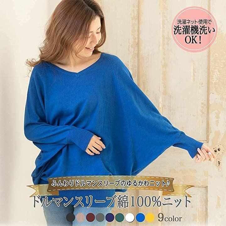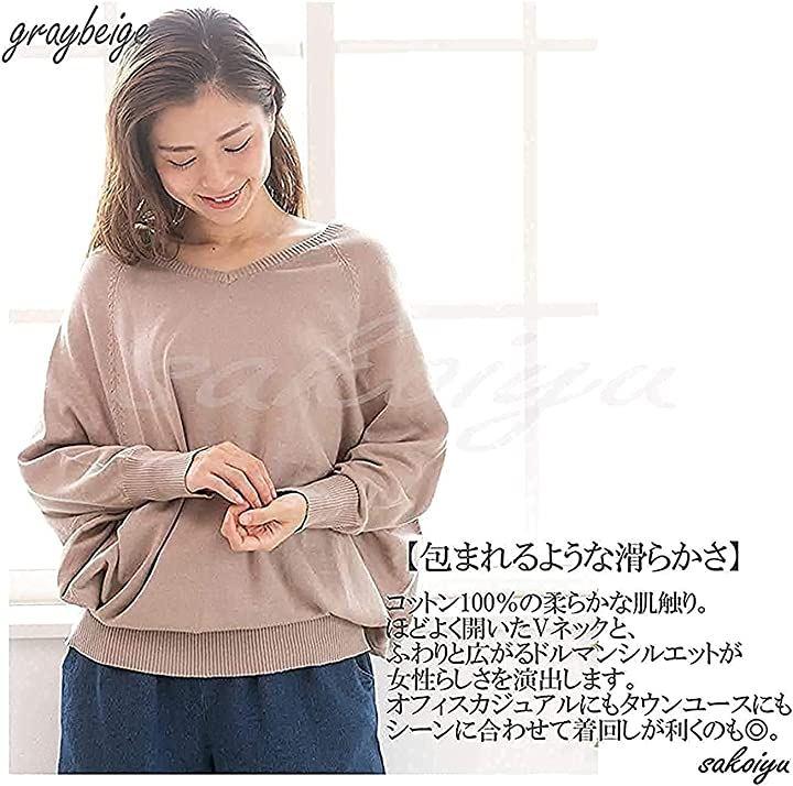 ・コットン100%の柔らかな肌触りで着心地・程よく開いたVネックと、ふわりと広がるドルマン・シルエットが、リラックス感がありながらもフェミニンな女性らしく、春ニットとしても活躍します。