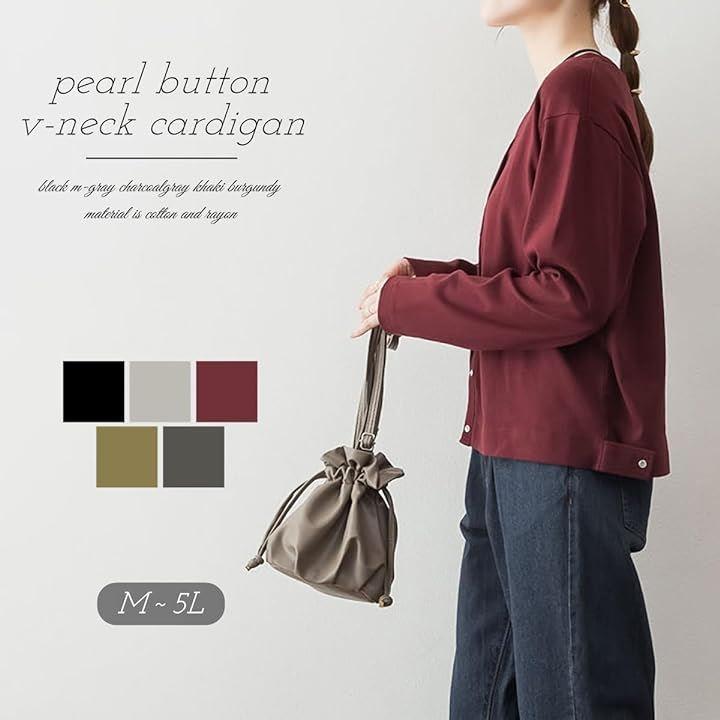 白パールボタンが可愛いVネックのフライスカーディガン。
