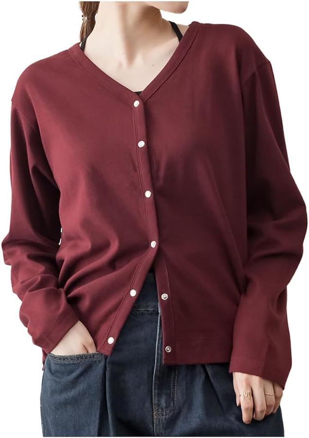 カーディガンとして羽織るのはもちろん、ボタンを適度に留めてトップスとして着用するのも