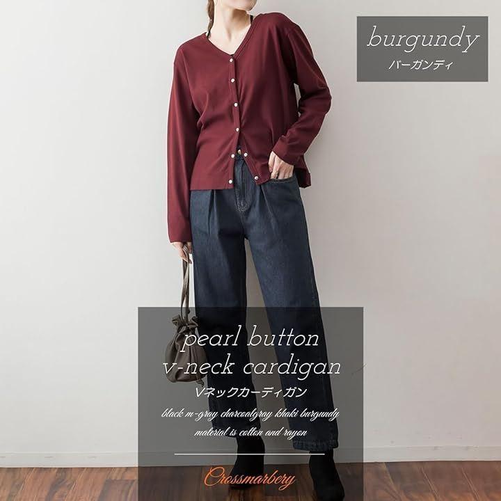 白パールボタンが可愛いVネックのフライスカーディガン。