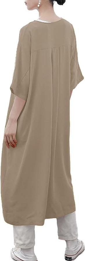 深めのVネックが抜け感とデコルテを綺麗に見せてくれて幅のある5分袖が二の腕をゆったりカバー。