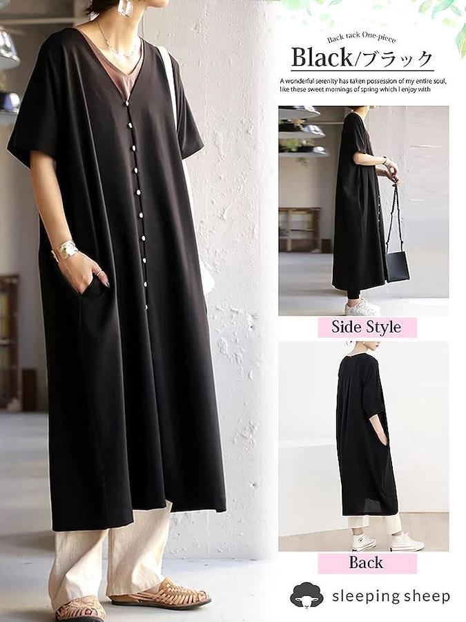 ストンとした落ち感がイマドキなスタイリングに仕上げてくれるたっぷりロング丈のワンピースです。