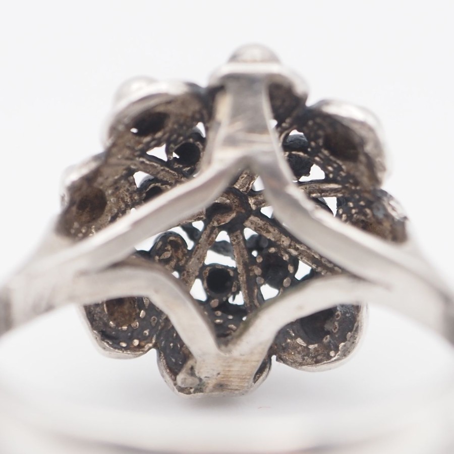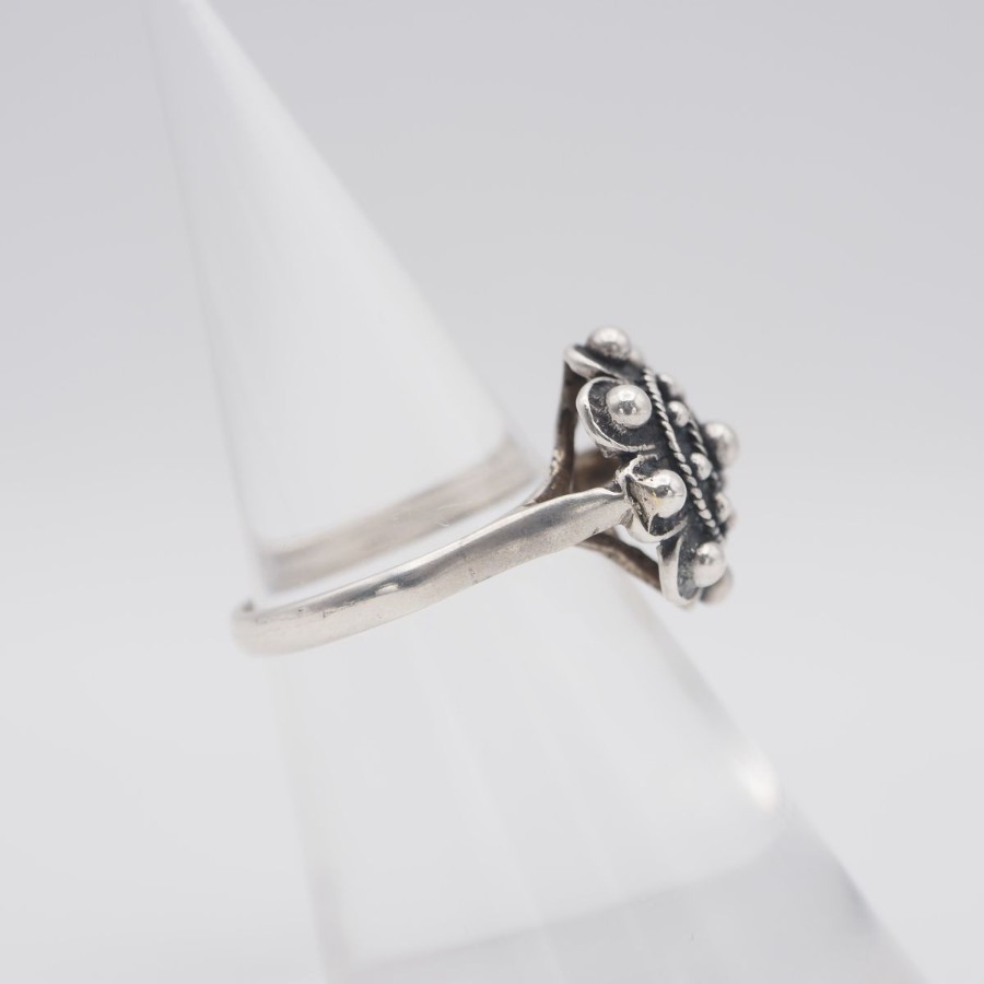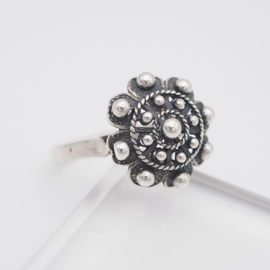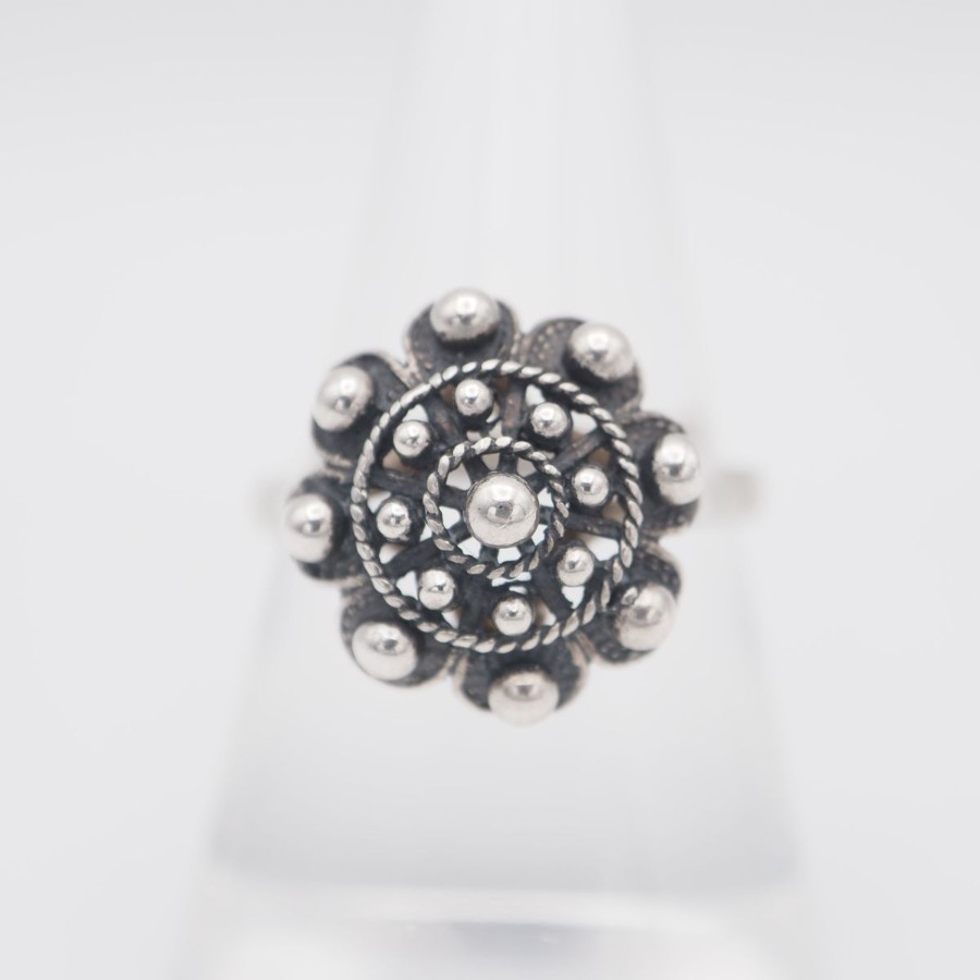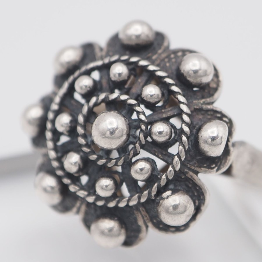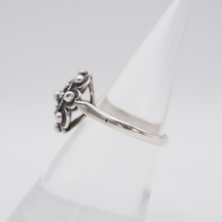 V019 Vintage Ring, Flower Design, Silver Ring, Size 11-12