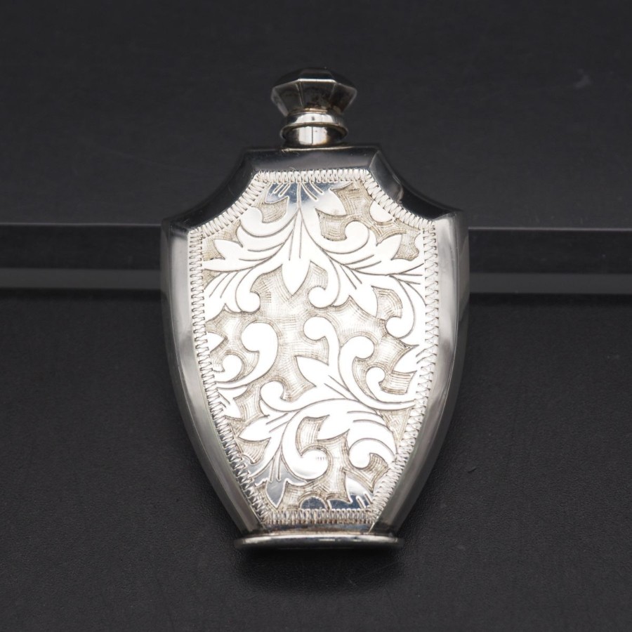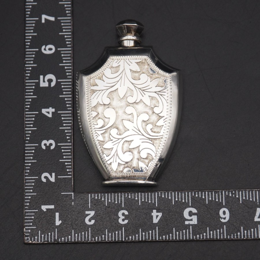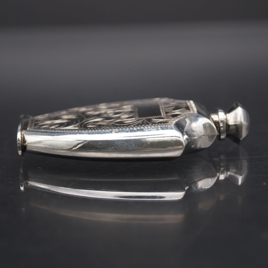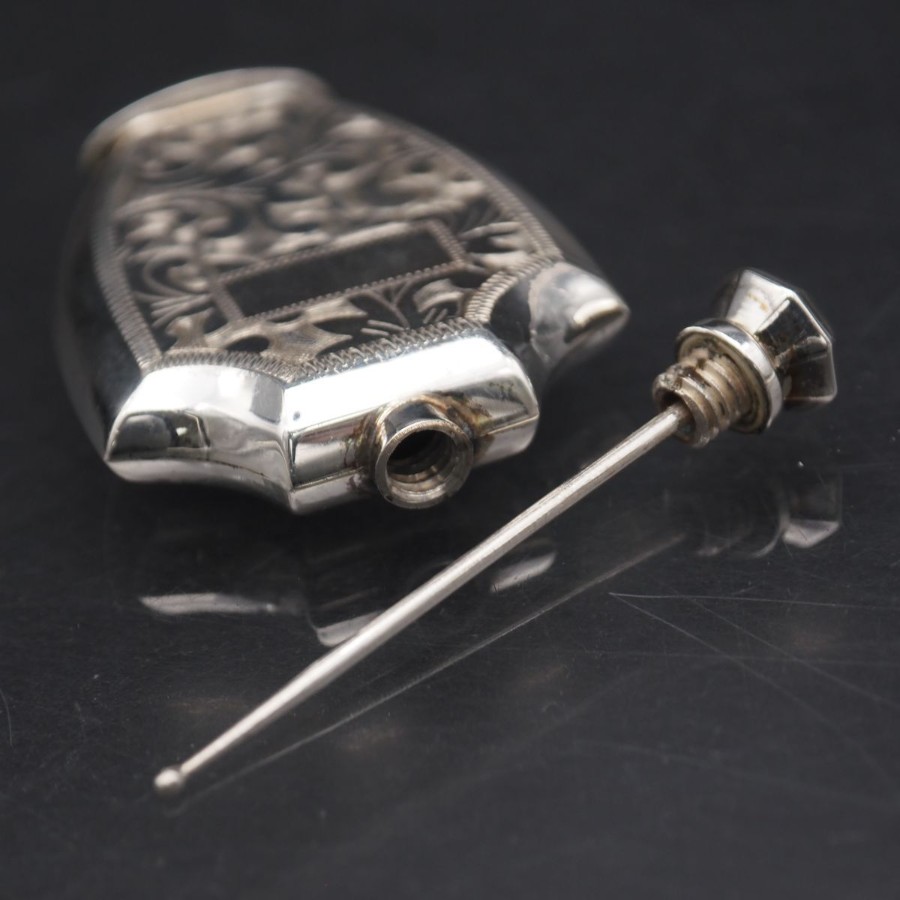 V697 Antique Silver 950 Stamped Perfume Bottle, Atomizer, Engraved, Retro Design, Silver, Vintage
