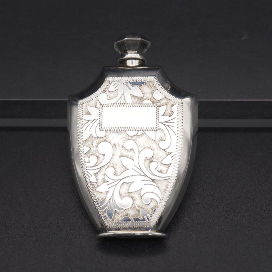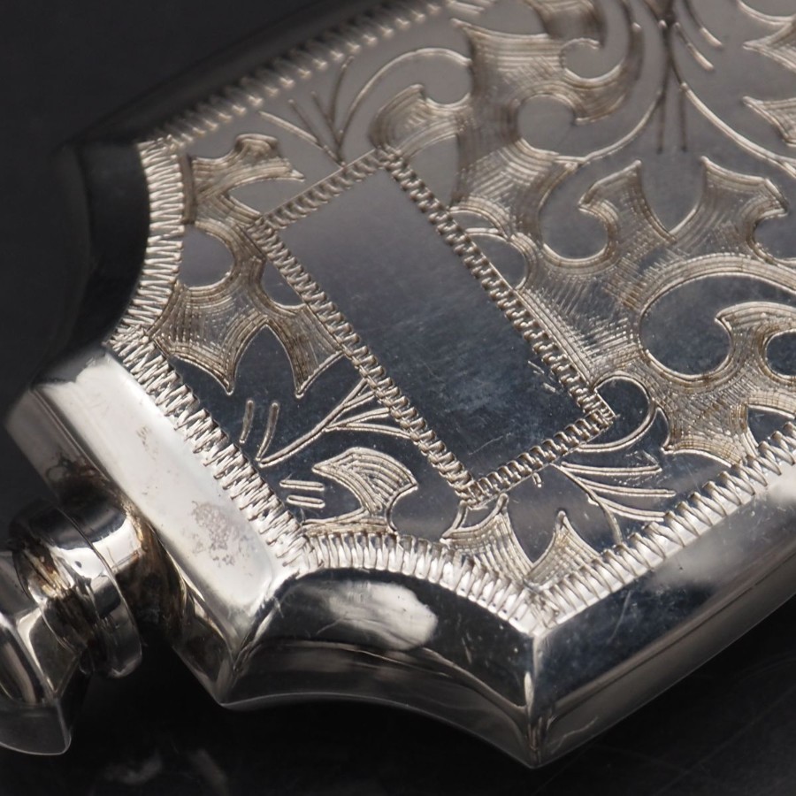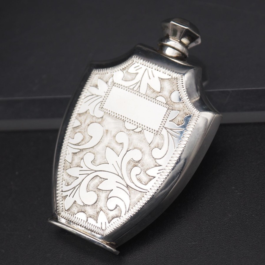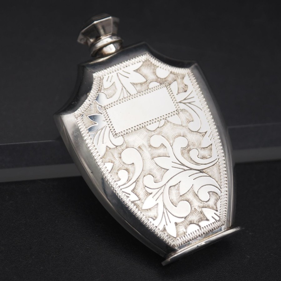V697 Antique Silver 950 Stamped Perfume Bottle, Atomizer, Engraved, Retro Design, Silver, Vintage