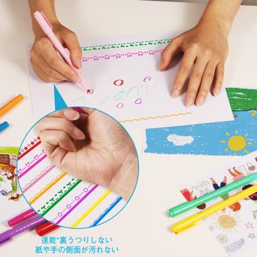 【改良版&長持ち】改良したカラーペンは、インクの量が従来比で40%多くなり、より長時間使用することができます。マーカーチップには新しい不乾性インクが使われており、キャップを閉め忘れた場合でも、ペン先が均一にインクを配分して滑らかな書き