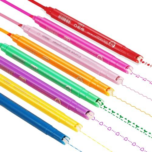 【個性的なカーブペン】普通のカラーマーカーペンで、波線や花などを描くことが時間をかかるだけでなく、綺麗な模様にも難しいです。このユニークな曲線蛍光ペンは、ペンをテキスト上に滑らせるだけで、普通の直線だけではなく、ローラースタンプが手書きでは難しい様・点線・波線など6種類の綺麗な線を簡単に引くことができます。お好みのカーブペンをお選びいただけます。