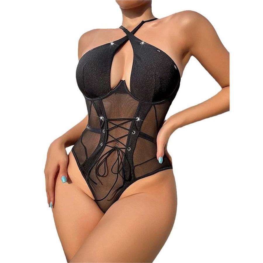 Valentine's Lingerie Sexy Erotic Nightwear Lace One-Piece Underwear See-Through Temptation (Medium)