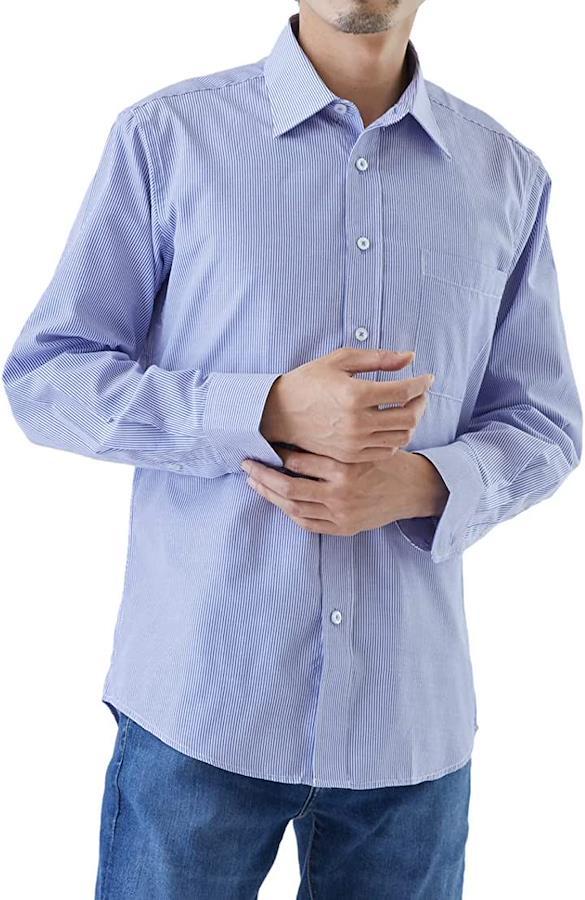 「定番モテシャツ」パンツinしても、パンツoutしても様になる。清潔感満点のストライプシャツなので、ネクタイ着用でも、袖まくりしてラフに着てもOKです。