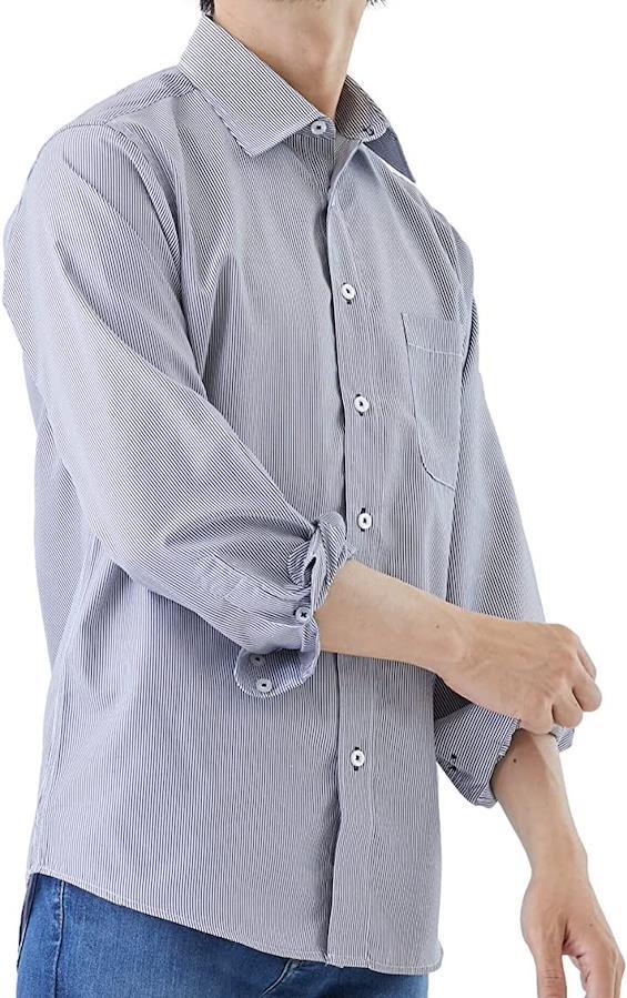 ・「定番モテシャツ」パンツinしても、パンツoutしても様になる。清潔感満点のストライプシャツなので、ネクタイ着用でも、袖まくりしてラフに着てもOKです。