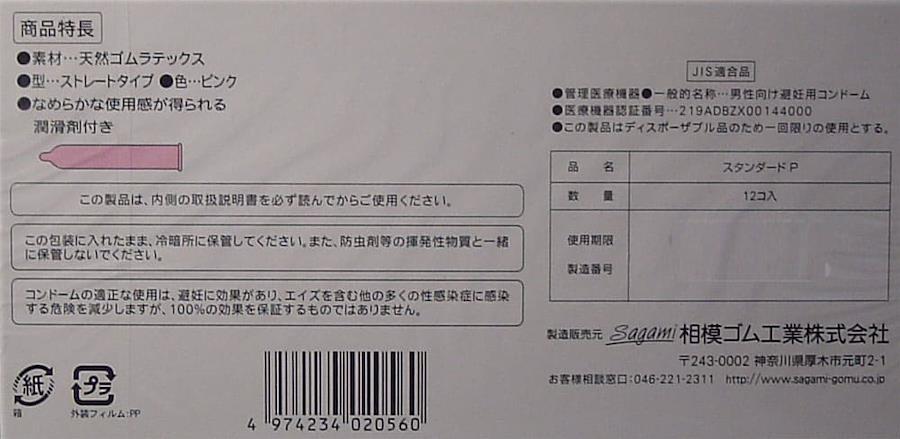 管理医療機器(男性向け避妊用コンドーム):医療機器製造販売認証番号 219ADBZX00144000(管理医療機器ですが、販売免許の届出がなくても販売可能です。)
