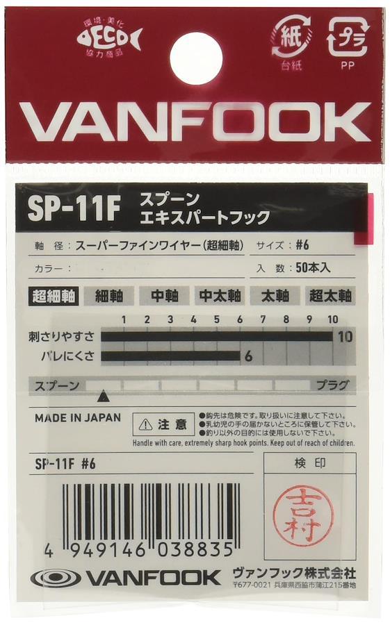 人気の「スプーンエキスパートフックシリーズ」がリニューアル!昨今のタックル進化に合わせ「改良型フッ素コーティングの採用」「材料・製法の改良」を行うことで、従来品よりも高い「防錆性能」「フック強度・耐久性」を実現しました!また、製品のリニューアルに合わせ「パッケージ」「入数」「品番」も変更いたしました!「SP-11F」は刺さりを徹底的に追求したスプーンフック! どんな弱いアタリもフッキング! ボトムの超デッドスローな釣りにも最適です。極限まで細くした鈎先、そしてバレにくさを追求した形状!