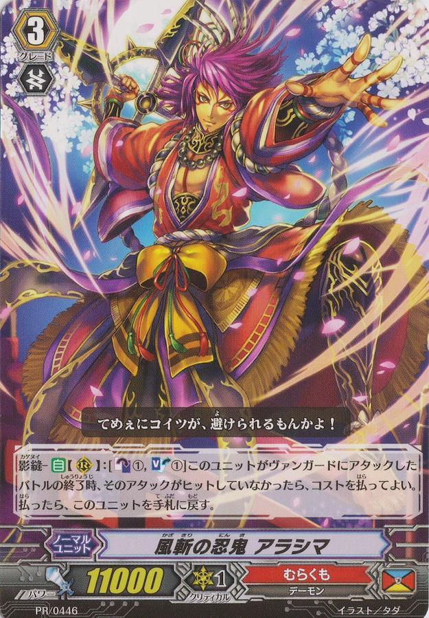 影縫 - 【自】【(R)】:[【カウンターブラスト】(1),【ソウルブラスト】(1)] このユニットがヴァンガードにアタックしたバトルの終了時、そのアタックがヒットしていなかったら、コストを払ってよい。払ったら、このユニットを手札に戻す。