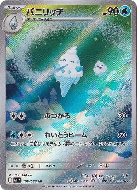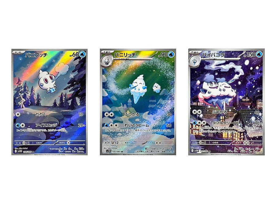 🔥 商品説明こちらは、ポケモンカードゲーム 「ブラックボルト(SV11B)」と「ホワイトフレア(SV11W)」 に収録された、人気ポケモン バニプッチ・バニリッチ・バイバニラの進化ラインが揃った豪華ARカードセットです。