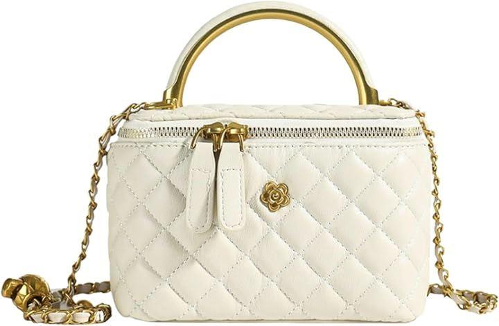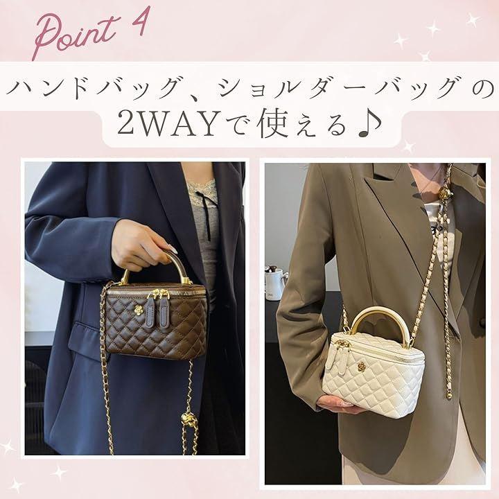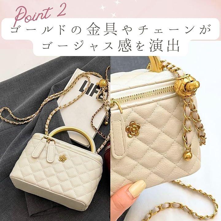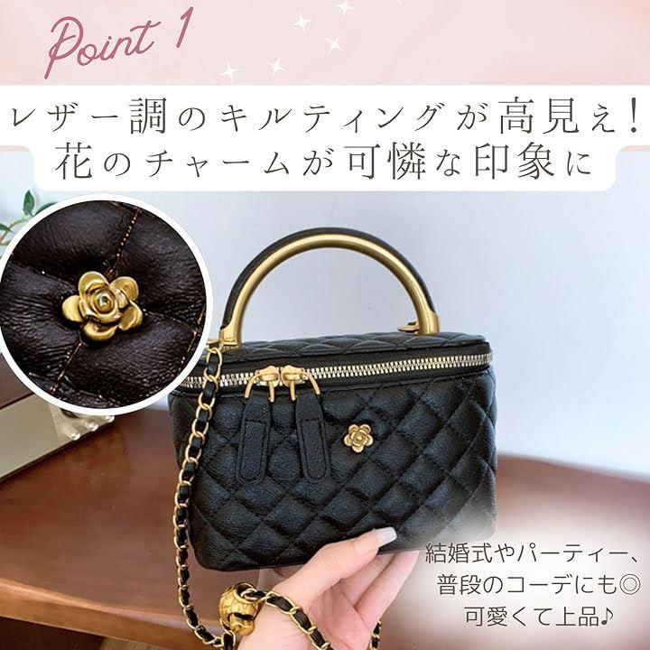 レザー調のキルティングが高見え。花のチャームが可憐な印象の上品で大人可愛いショルダーバニティバッグです。