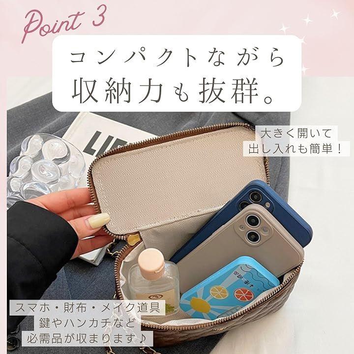 ミニ財布はもちろん、ケータイやハンカチティッシュ、お化粧品やちょっとした小物類も楽々収納可能です。