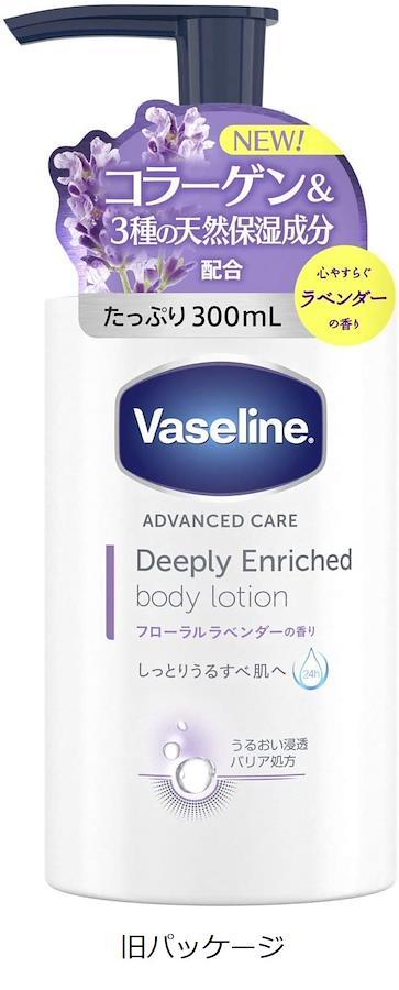 ブランド Vaseline香り フローラルラベンダー商品の形状 リキッド有効成分 ジメチコンユニット数 300.0 ミリリットル商品の個数 1用途 全身肌タイプ 全肌質特別な原料 グリセリン, ワセリン商品体積 300 ミリリットル