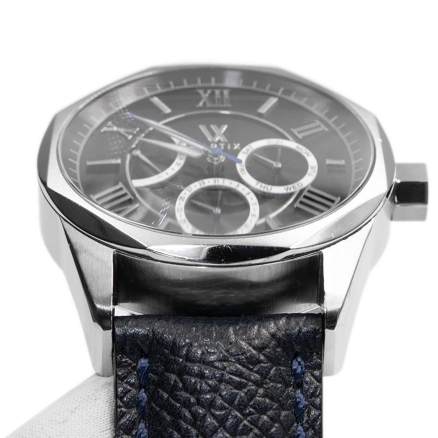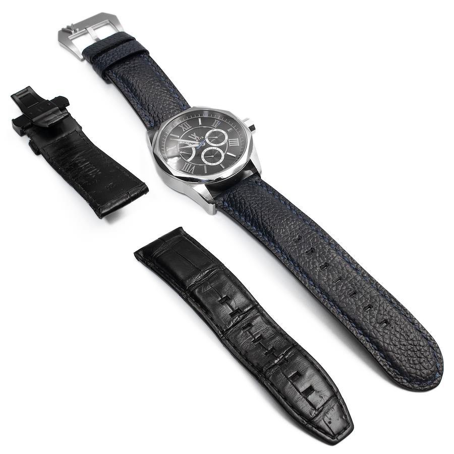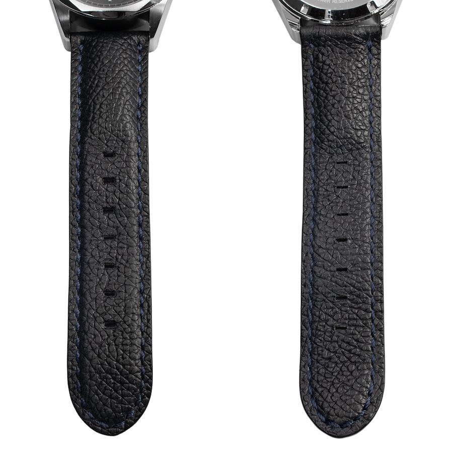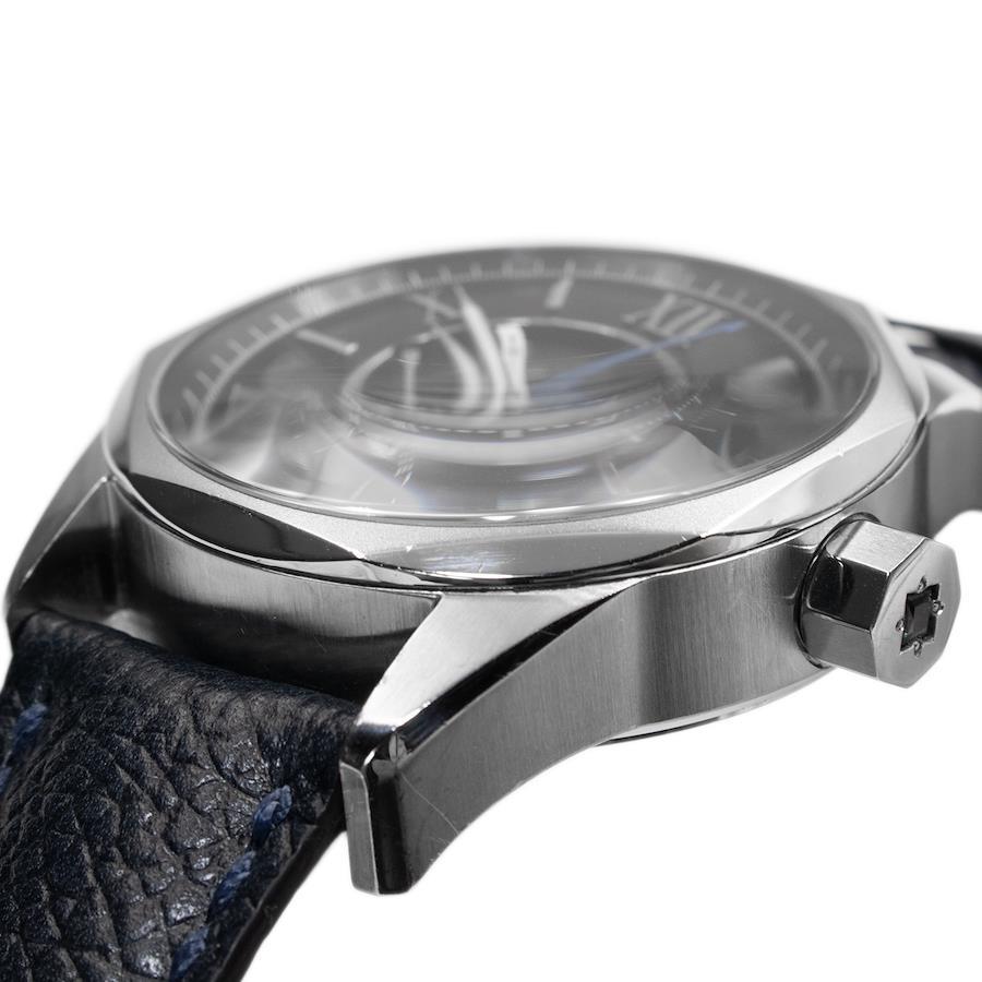 ブラックで統一された文字盤とベルトが、その力強いフォルムをさらに引き締め、シャープで、都会的な印象を演出いたします。