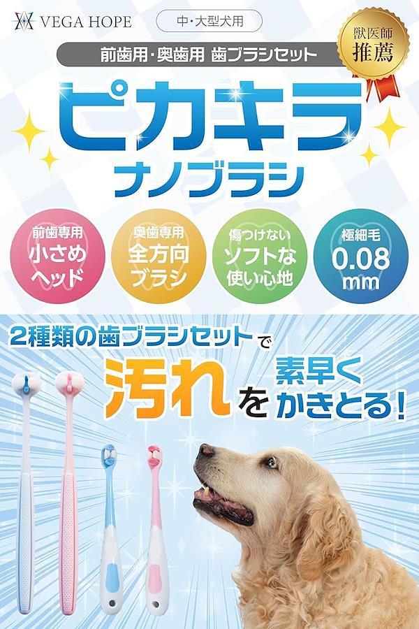そこで、ワンちゃんの為の前歯用・奥歯用歯ブラシセット「ピカキラナノブラシ」が誕生しました。