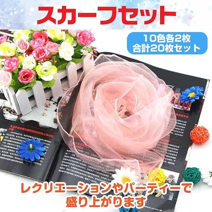 ベール20枚セットは、使いやすい60センチ四方のカラフルなスカーフの10色、20枚セット。