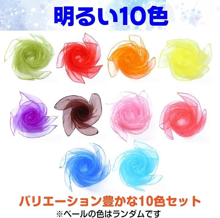 ベール、10色、各2枚セット、20枚、60x60cm、ポリエステル、赤、黄、青、緑、ピンク、紫、オレンジ、水色等*在庫状況によりベールの色はランダムになる可能性もございます。