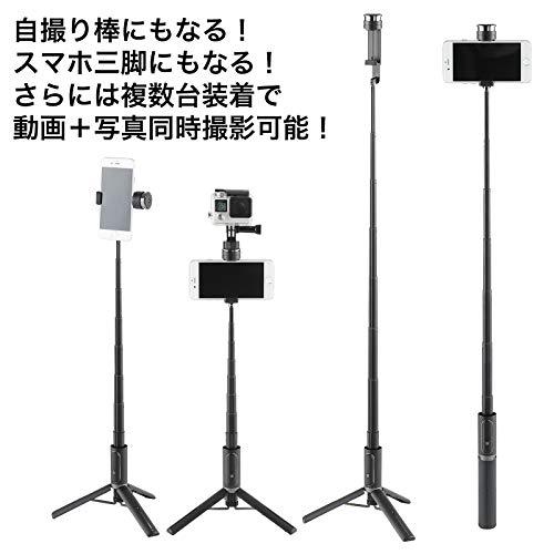 シャッターボタン付き自撮り棒が便利なスマホ三脚に大変身、先端にカメラねじ装備で2台撮影も可能。メーカー型番: Coleman Selfie Multi Stand BK (JAN: 4907990302618)スタンド時全高: 840mm/ 自撮り棒時全高: 823mm/ 縮長: 215mmグリップ部径: 30mm/ 8段本体質量: 182g/ 推奨積載質量: 350g?もっと見る
