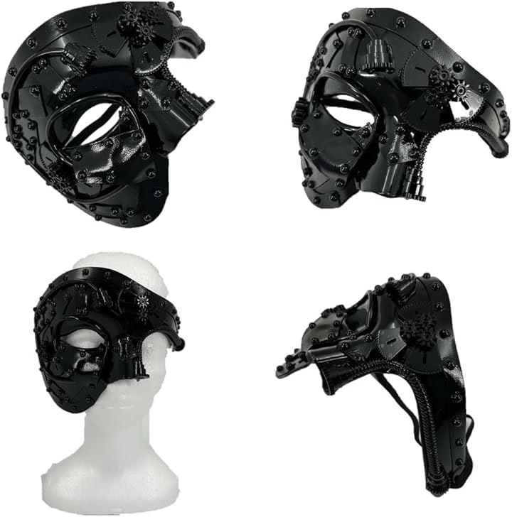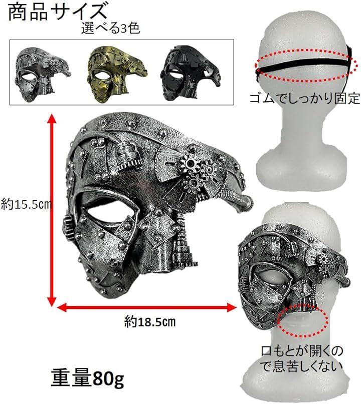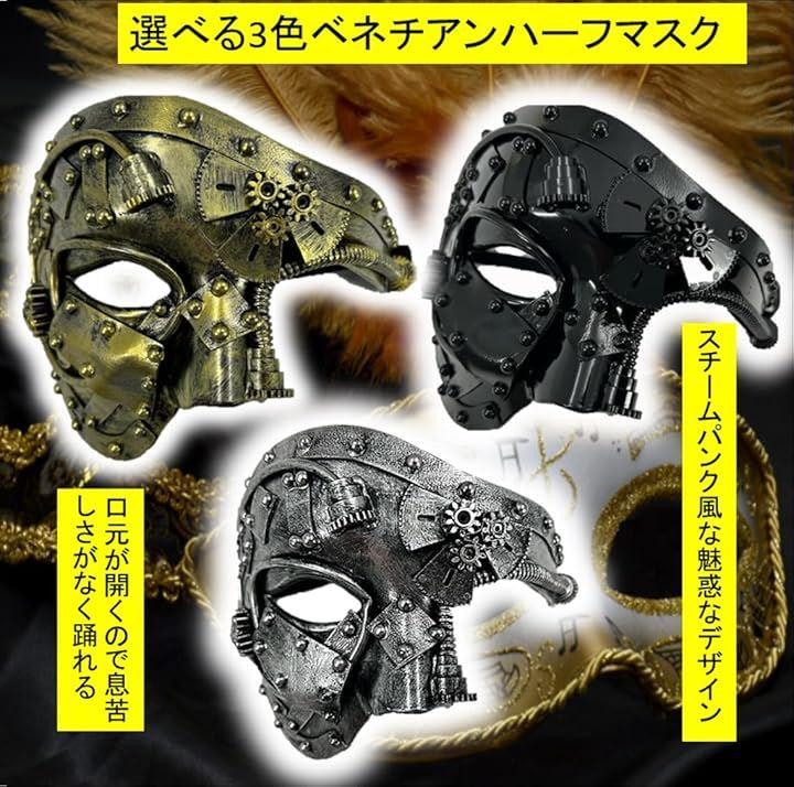 イタリアのお祭りのヴェネツィア カーニバルで使われている仮面をオマージュしたベネチアンマスク。今、流行りのスチームパンク風のハーフフェイスマスク。魅惑、誘惑のオシャレ、ゴージャス、マスクをかぶり 秘密のパーティーに参加すれば目立つこと間違いなし。