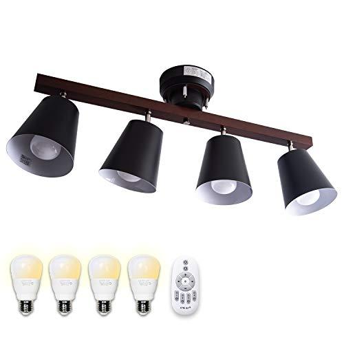 Point 4.【長寿命で省エネな高機能LED電球付】 面倒な電球購入をする必要がなく、本体にリモコン式LED電球4個付いています。それぞれ100w相当の明るさで、電気消費量の少ない省エネLEDタイプ!4灯の合計光量は4500ルーメン、12畳以下の空間は余裕でカバー。 付属電球の電気代は4灯すべて明かるさ全開にしても一日わずか6円! (一日5時間使用、1kWh単価27円で計算)全灯のON/OFFはもちろん、明るさの切り替えから光色の調整まで、単体ボタンで4つの電球をそれぞれ別々に細かく操作できます。ON・OFF以外、リモコンで4つの電球のそれぞれの明るさと色合いを調整することも 可能です。 使用シーンに合わせて色温度を変え、雰囲気作りに役立ちます。 お勉強の時の集中力を高めるよう、デスクに向くヘッドは昼白色にしたり、お料理が一層見えるように、食卓テーブルに向くヘッドは電球色にしたり、映画の時は全体を暗くして、お留守番や常夜灯が必要な時に1灯のみ付けて一番暗くすることもできます。
