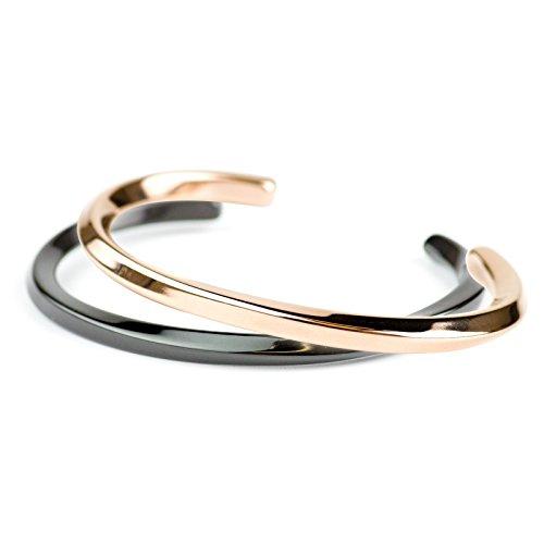 Verita. Pair of Titanium Bangles, Hypoallergenic, Black & Gold, Men's and Women's, Perfect Gift for Anniversaries, Birthdays, and Christmas.