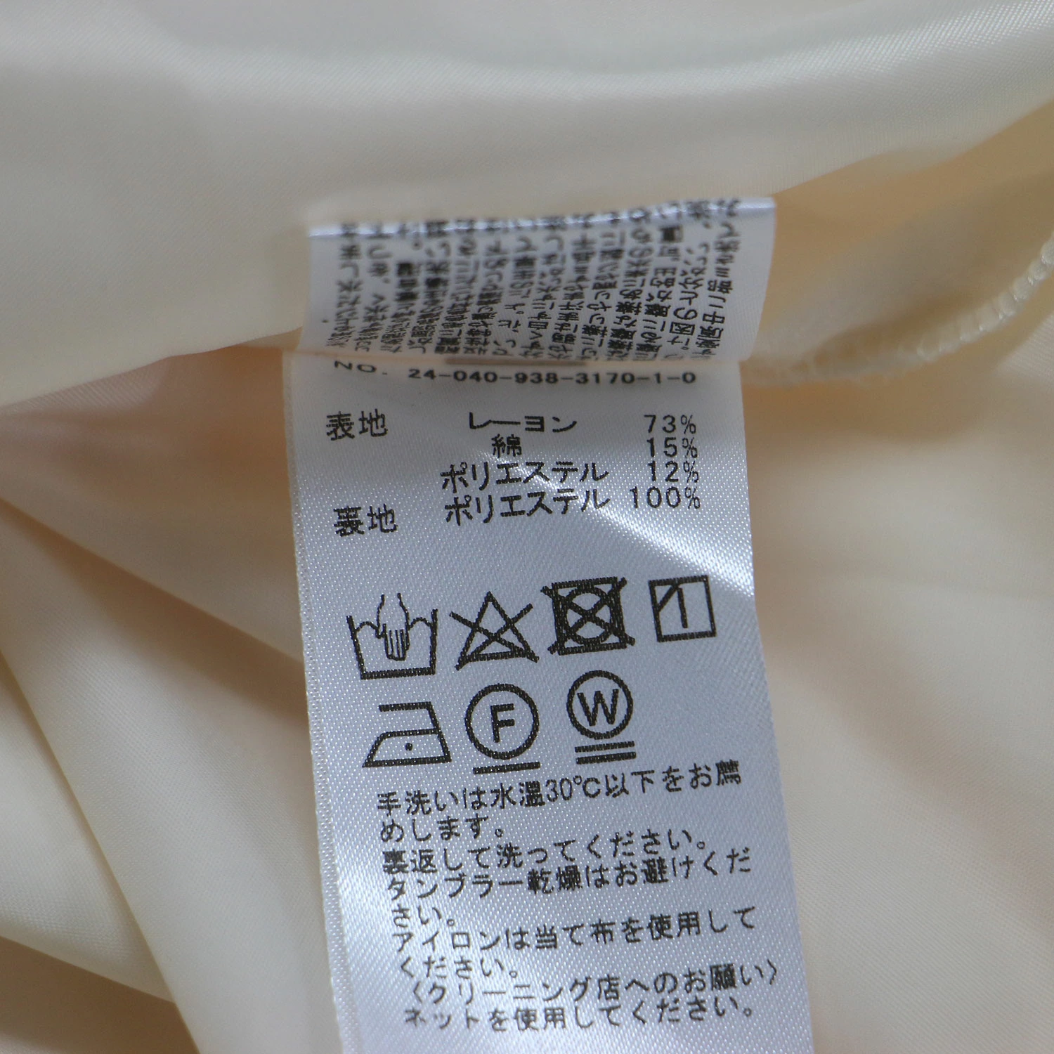 | 素材 | 表地 レーヨン 73% コットン 15% ポリエステル 12% 裏地 ポリエステル 100% |