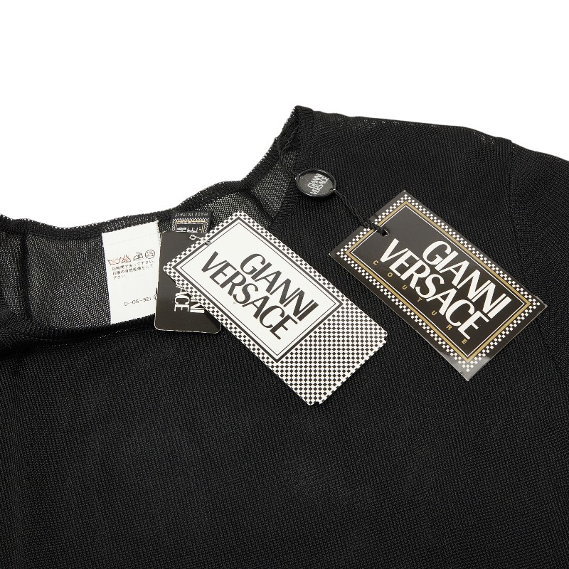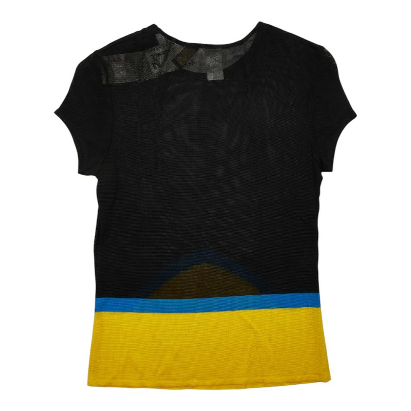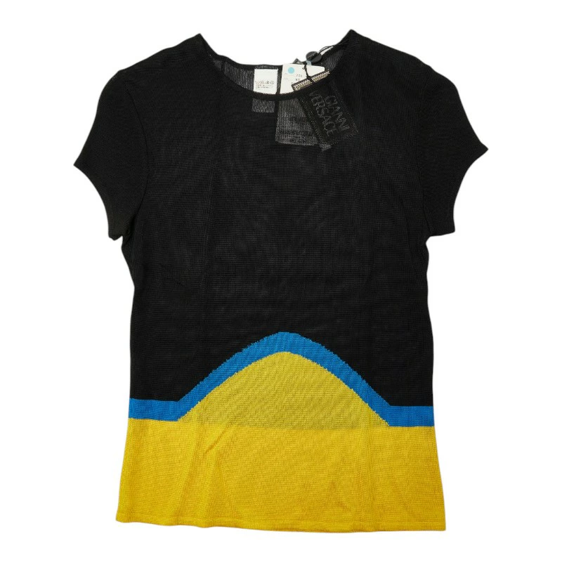 Versace Mesh Knit Top, Short Sleeve, Size 42, Black, Yellow, Blue, Rayon, Women's, VERSACE [Used]