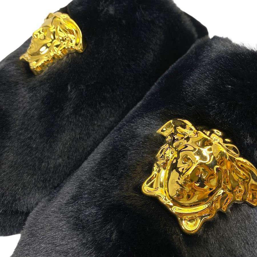 【ブランド】VERSACE ヴェルサーチェ【商品名】スリッパ【商品番号】ZSL000008【カラー】ブラック/ゴールド【サイズ】アウトソール:約25.5cm アッパー幅:約9.5cm ヒール:約3.5cm 表記サイズ:39(約25cm)【素材】フェイクファー【付属品】箱【ランク】SAランク【コメント】外面:特筆すべきダメージなし 中面:特筆すべきダメージなし *未使用のため、とても綺麗なお品です【管理番号】0113c1846a商品情報