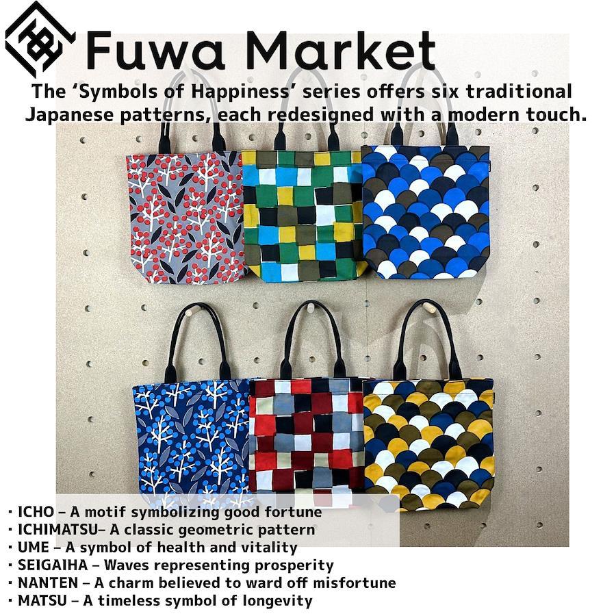 「幸せの文様」シリーズは、日本の伝統文様が持つ「幸せを願う意味」に着目し、テキスタイルデザイナーとともに生み出したFuwa Marketオリジナルデザインです。