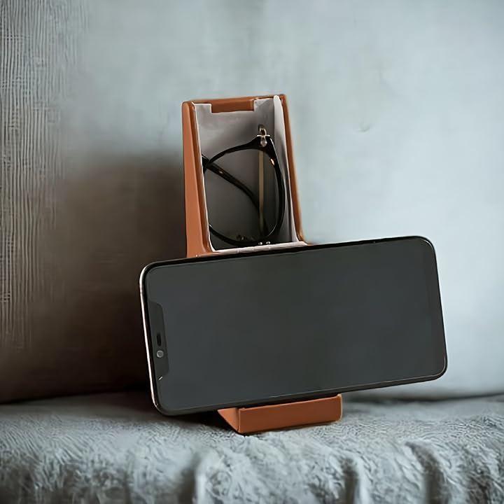 このスタイリッシュな多機能ケースは、メガネ、ペン、スマートフォンを美しく収納できる実用的なデスクアクセサリーです。