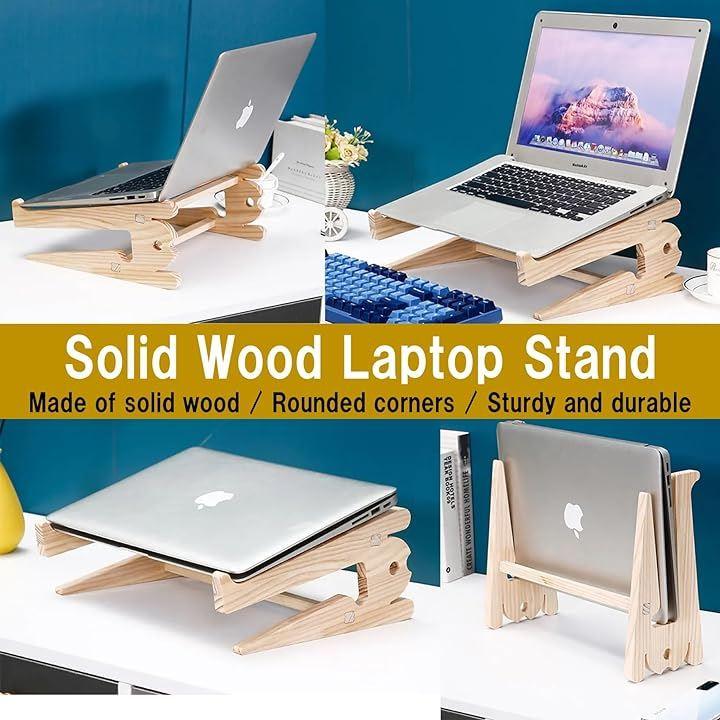 木材のラップトップスタンドは環境にも優しく外観もナチュラルモダンで作業環境を落ち着いた雰囲気にします。