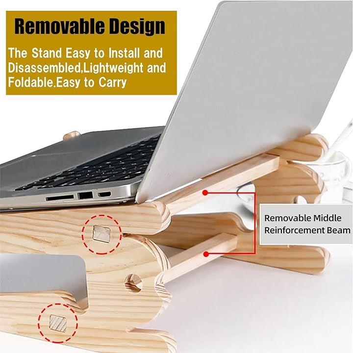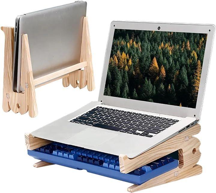木材のラップトップスタンドは環境にも優しく外観もナチュラルモダンで作業環境を落ち着いた雰囲気にします。