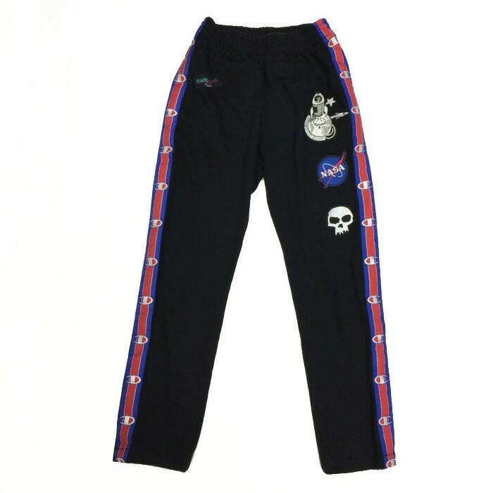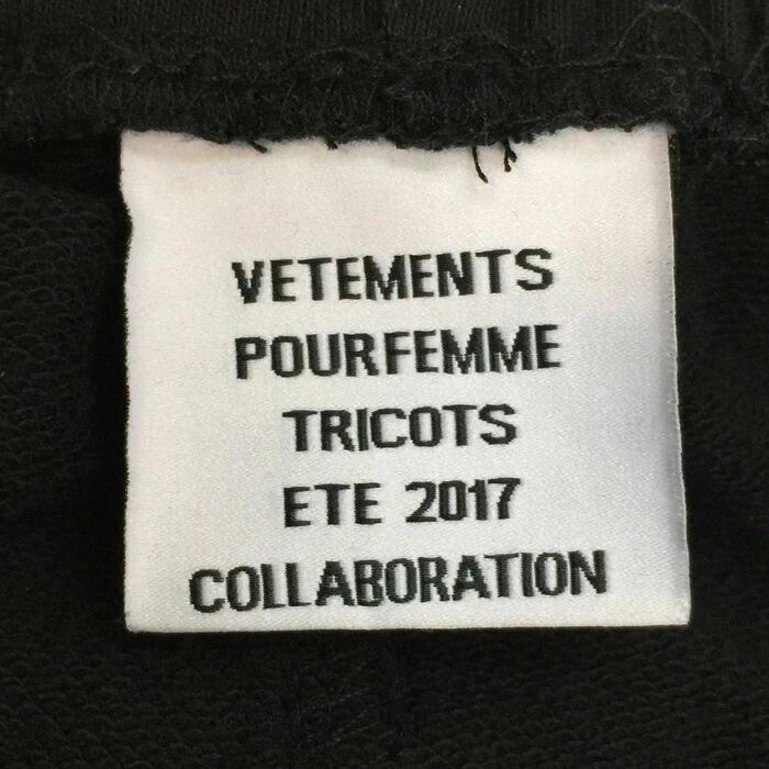 【管理番号】 012783s05i【ブランド名】 VETEMENTSヴェトモン【アイテム】 サイドロゴラインパンツ M【サイズ】 M 平置採寸(ウエスト:約31.5cm総丈:約98cm 股上:約29.5cm 股下:約70.5cm わたり幅:約29.5cm 裾幅:約17.5cm)【色・柄】 ブラック【素材】表示タグがないため不明です。【外観ランク】Bランク【商品補足説明】 ウエストはゴムです。所々にほつれがみられます。チャンピオンのタグがありません。