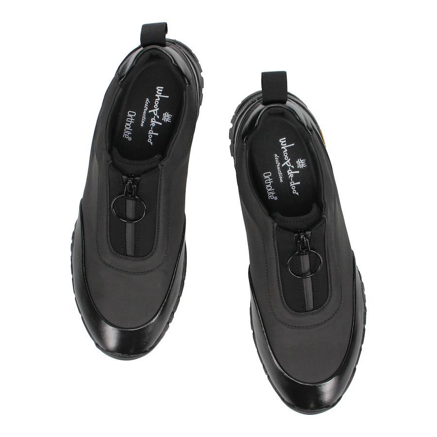 センタージップスニーカー 【素材】 耐久撥水、撥油性、防汚に優れたポリエステル製のテフロン素材と人工皮革を使用。 【デザイン】 ループ型のセンタージップを使用したハイブリットスニーカー。生活撥水を持ち合わせながらスタイリッシュなデザインであり、VIBRAMソールのメガグリップのコンパウンドで耐久性と防滑性にも優れています。 ライニングには高機能マイクロファイバーを使用し吸汗性能・防臭のパフォーマンスに優れています。 【サイズ】 ※普段通常の革靴で25.5cm、スニーカーで26.5-27.0cmを着用するスタッフで<41/25.5cm>でちょうどよかったです。 ※サイズ感は、個人差がございますのであくまで参考程度にお考え下さい。 ■ブランド:whoop'-de-doo' destruction ■カラー:ブラック、カーキ、ホワイト ■アッパー素材:生地/人工皮革 ■底材:ラバー(ヴィブラム社製) ■ヒール:約4.0cm ■ソール:約2.5cm ■重さ(片足):約393g ■製法:セメント ■中国製 *上記は全て25.5cmで計測した数値です。 *多少の誤差が生じる場合がございますので予めご了承下さい。 whoop de doo co.,ltd whoop'-de-doo' フープディドゥ |