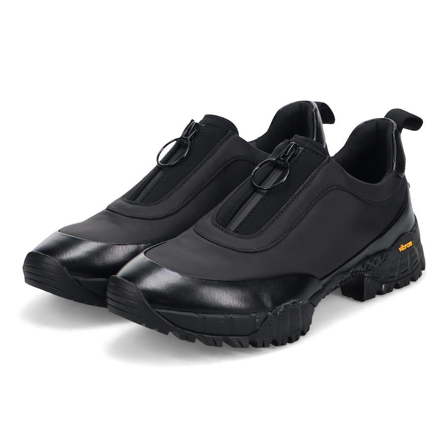 センタージップスニーカー 【素材】 耐久撥水、撥油性、防汚に優れたポリエステル製のテフロン素材と人工皮革を使用。 【デザイン】 ループ型のセンタージップを使用したハイブリットスニーカー。生活撥水を持ち合わせながらスタイリッシュなデザインであり、VIBRAMソールのメガグリップのコンパウンドで耐久性と防滑性にも優れています。 ライニングには高機能マイクロファイバーを使用し吸汗性能・防臭のパフォーマンスに優れています。 【サイズ】 ※普段通常の革靴で25.5cm、スニーカーで26.5-27.0cmを着用するスタッフで<41/25.5cm>でちょうどよかったです。 ※サイズ感は、個人差がございますのであくまで参考程度にお考え下さい。 ■ブランド:whoop'-de-doo' destruction ■カラー:ブラック、カーキ、ホワイト ■アッパー素材:生地/人工皮革 ■底材:ラバー(ヴィブラム社製) ■ヒール:約4.0cm ■ソール:約2.5cm ■重さ(片足):約393g ■製法:セメント ■中国製 *上記は全て25.5cmで計測した数値です。 *多少の誤差が生じる場合がございますので予めご了承下さい。 whoop de doo co.,ltd whoop'-de-doo' フープディドゥ |