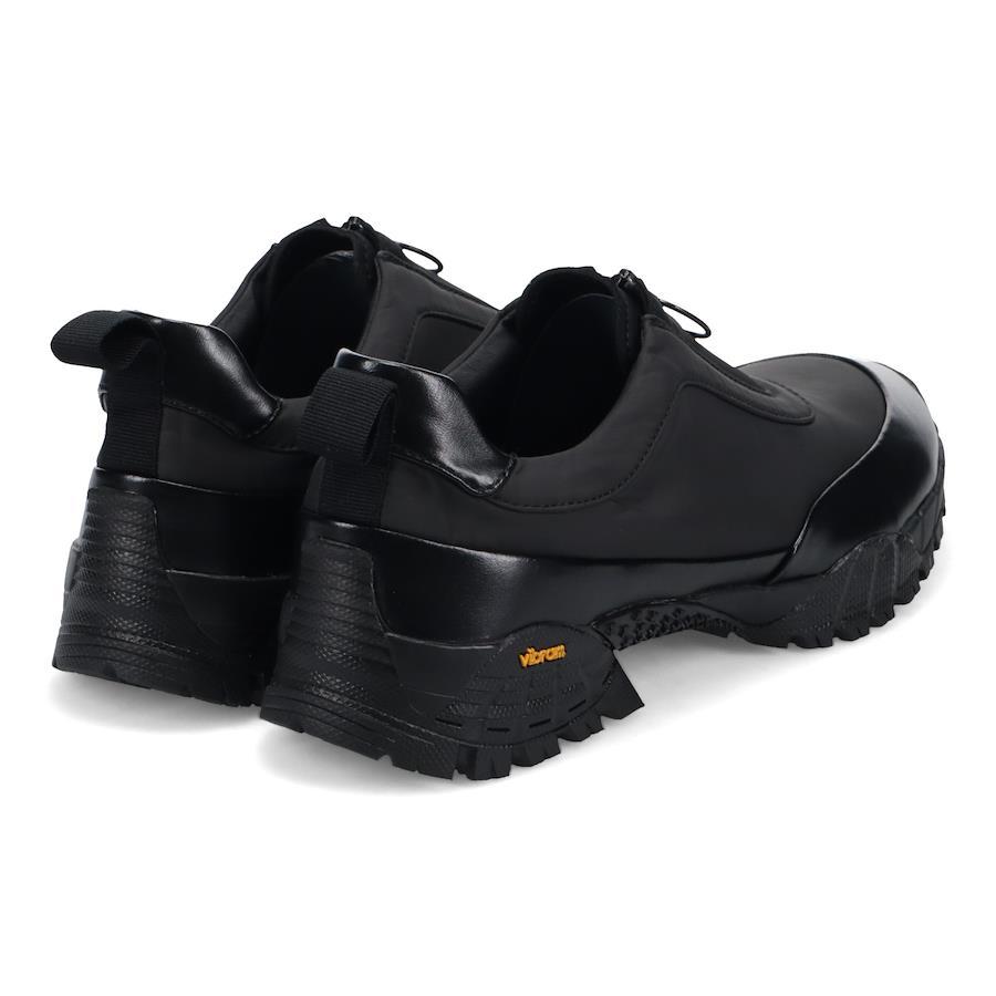 センタージップスニーカー 【素材】 耐久撥水、撥油性、防汚に優れたポリエステル製のテフロン素材と人工皮革を使用。 【デザイン】 ループ型のセンタージップを使用したハイブリットスニーカー。生活撥水を持ち合わせながらスタイリッシュなデザインであり、VIBRAMソールのメガグリップのコンパウンドで耐久性と防滑性にも優れています。 ライニングには高機能マイクロファイバーを使用し吸汗性能・防臭のパフォーマンスに優れています。 【サイズ】 ※普段通常の革靴で25.5cm、スニーカーで26.5-27.0cmを着用するスタッフで<41/25.5cm>でちょうどよかったです。 ※サイズ感は、個人差がございますのであくまで参考程度にお考え下さい。 ■ブランド:whoop'-de-doo' destruction ■カラー:ブラック、カーキ、ホワイト ■アッパー素材:生地/人工皮革 ■底材:ラバー(ヴィブラム社製) ■ヒール:約4.0cm ■ソール:約2.5cm ■重さ(片足):約393g ■製法:セメント ■中国製 *上記は全て25.5cmで計測した数値です。 *多少の誤差が生じる場合がございますので予めご了承下さい。 whoop de doo co.,ltd whoop'-de-doo' フープディドゥ |