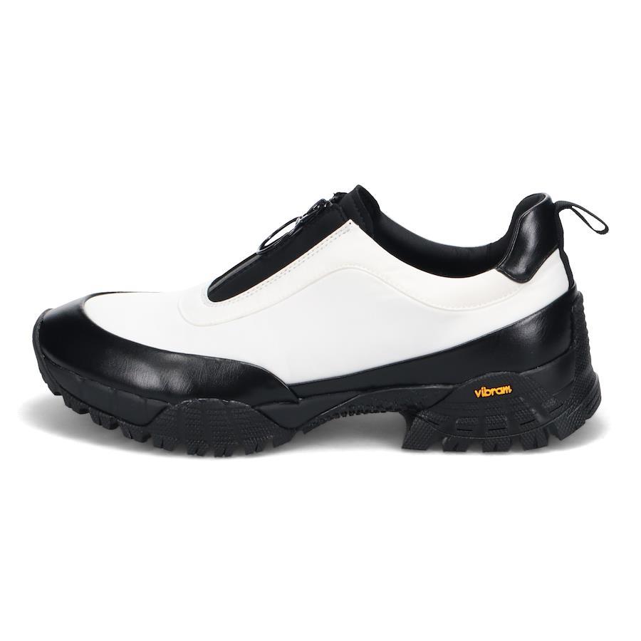 センタージップスニーカー 【素材】 耐久撥水、撥油性、防汚に優れたポリエステル製のテフロン素材と人工皮革を使用。 【デザイン】 ループ型のセンタージップを使用したハイブリットスニーカー。生活撥水を持ち合わせながらスタイリッシュなデザインであり、VIBRAMソールのメガグリップのコンパウンドで耐久性と防滑性にも優れています。 ライニングには高機能マイクロファイバーを使用し吸汗性能・防臭のパフォーマンスに優れています。 【サイズ】 ※普段通常の革靴で25.5cm、スニーカーで26.5-27.0cmを着用するスタッフで<41/25.5cm>でちょうどよかったです。 ※サイズ感は、個人差がございますのであくまで参考程度にお考え下さい。 ■ブランド:whoop'-de-doo' destruction ■カラー:ブラック、カーキ、ホワイト ■アッパー素材:生地/人工皮革 ■底材:ラバー(ヴィブラム社製) ■ヒール:約4.0cm ■ソール:約2.5cm ■重さ(片足):約393g ■製法:セメント ■中国製 *上記は全て25.5cmで計測した数値です。 *多少の誤差が生じる場合がございますので予めご了承下さい。 whoop de doo co.,ltd whoop'-de-doo' フープディドゥ |