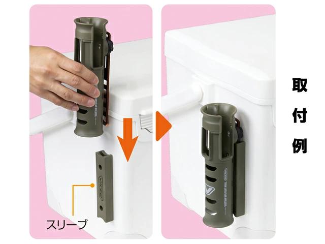 スリーブにターンロックロッドホルスターのフックを差すことでクーラーなどに取り付けが可能。