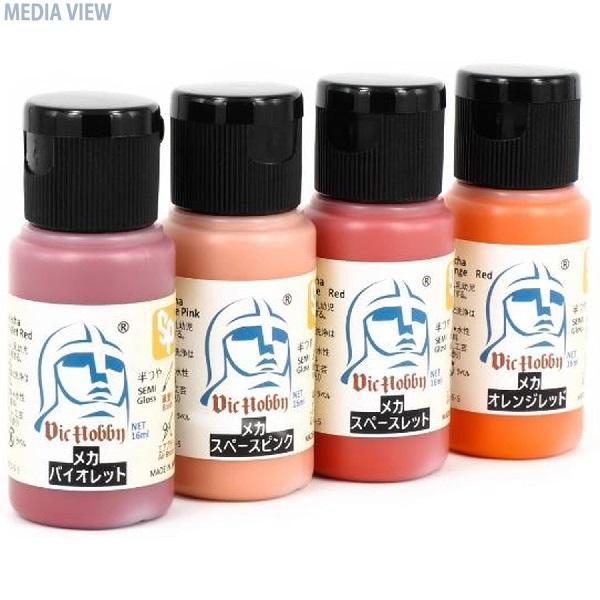 VICホビー 「キャラクターメカ用 スペースカラー 1」 模型用塗料です。1セット4本「メカバイオレット」、「メカスペースピンク」、「メカスペースレッド」、「メカオレンジレッド」の4色入りです。各色内容量:16ml