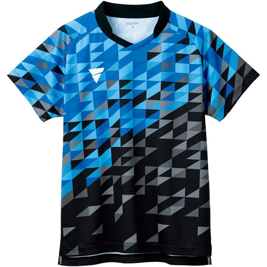 色番4020 GR×OR、色番9050 RD×BLの2色をVICTAS契約選手が全日本選手権で着用。肌触りがよく吸汗速乾性に優れた軽量の素材を使用したゲームシャツです。New Colorとしてグリーンとレッドを採用しました。2面によるVICTASのアイコニックデザインを取り入れ、新しい造形と色幅に挑戦したデザインです。V-GP221とのセットアップデザインです。