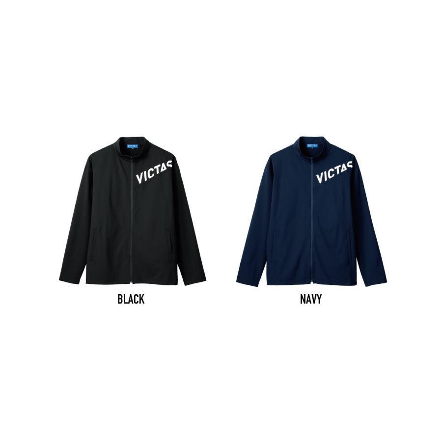 吸汗速乾素材を使用し、腕を動かしやすくする"スプリットラグランスリーブ"(前:ドロップ、後:ラグラン)を採用。肩口のVICTASタイプロゴマークがスタイリッシュなシンプルなトレーニングジャケットです。