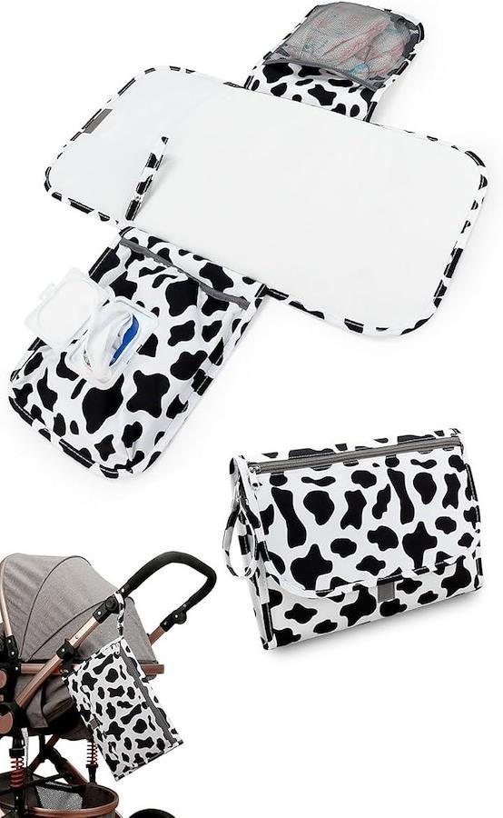 外出用のオムツポーチ⇒おむつ替えシート付き、替えのオムツも入ります、おしり拭きも内蔵できます、汚物を包むビニールも小物ポケットに入れれます、このポーチ一つでおむつ替えに必要な物が入ります。