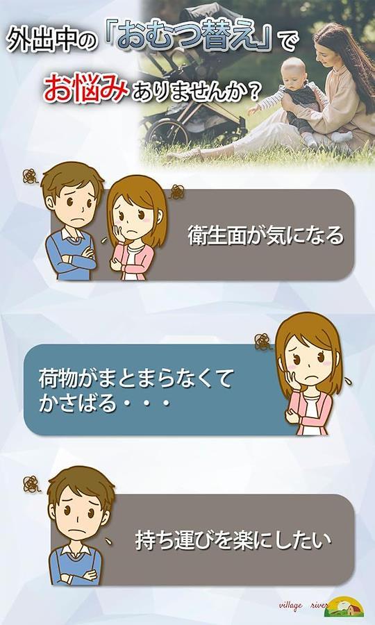 おむつ替えシートが付いているので車の中やベビールームでも衛生面を気にせずおむつ交換ができます。