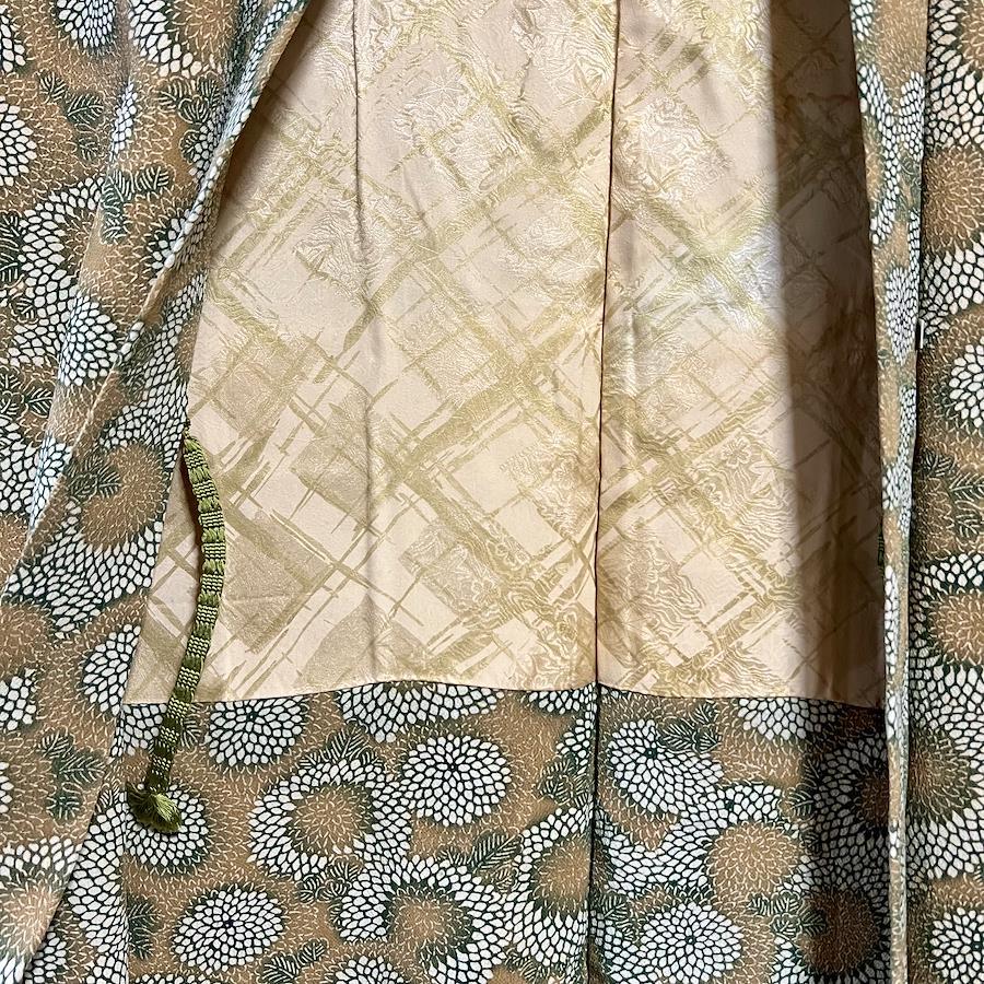 Vintage Haori (Haori) with Chrysanthemum Print, Green